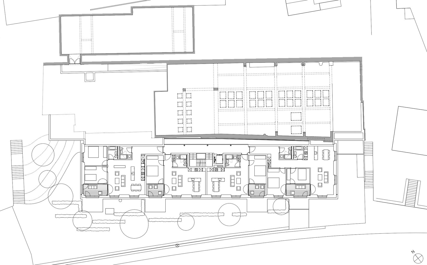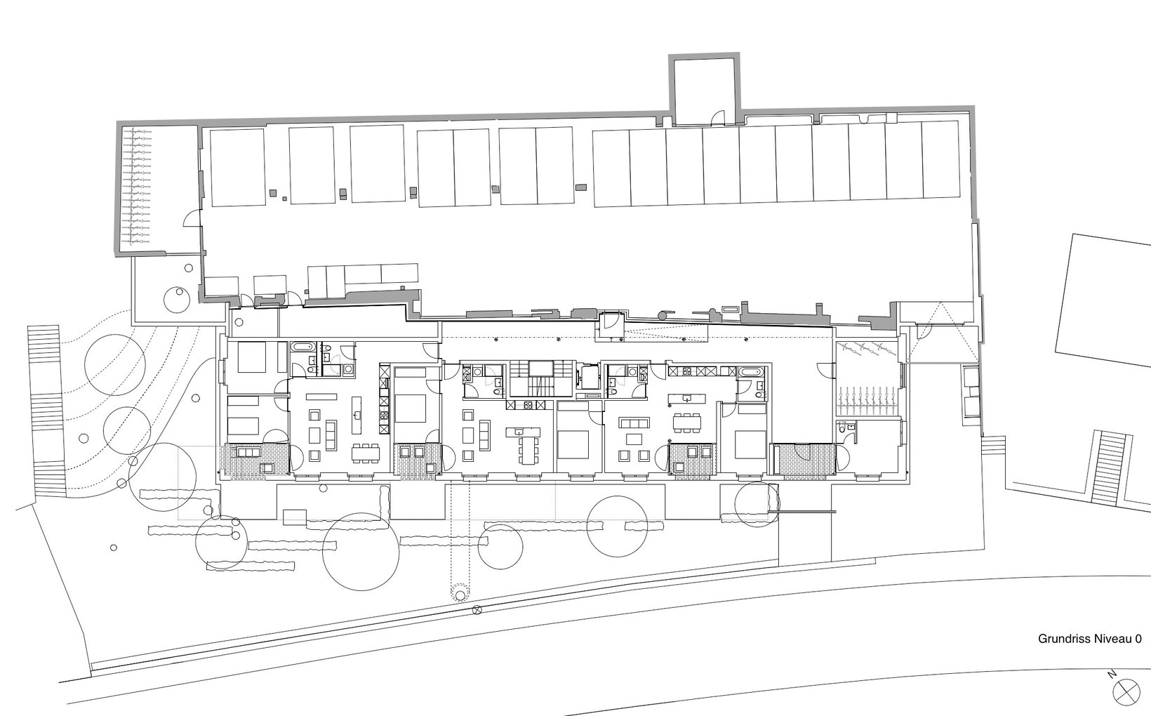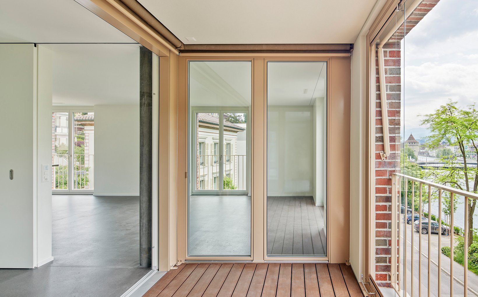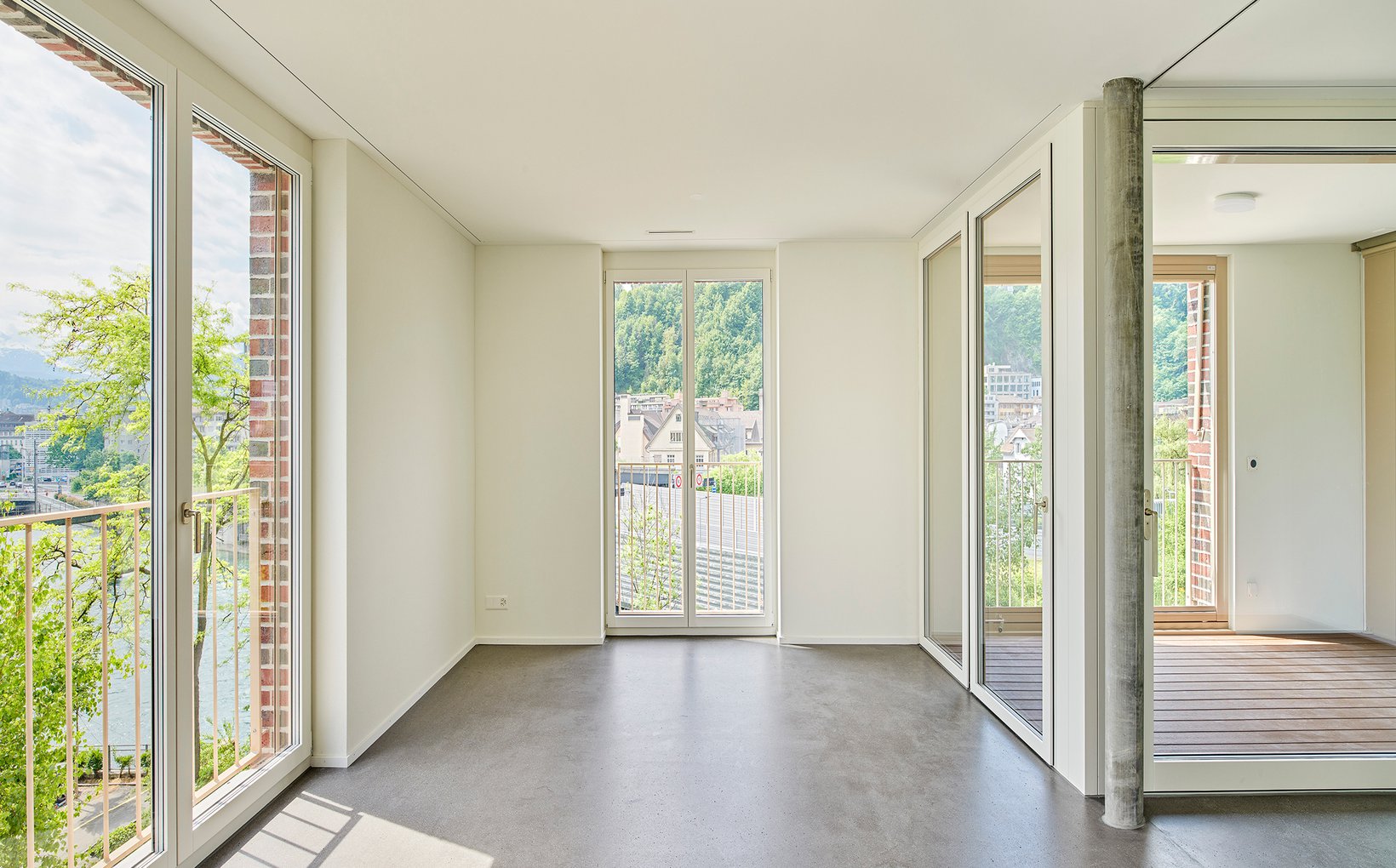 Das bestehende, ursprünglich als Molkereigebäude erstellte Gebäude wird mehrheitlich ersetzt. Die grosse Lagerhalle wird zur Einstellhalle umgenutzt. Der gestaffelte Baukörper liegt parallel zur St. Karlistrasse. Das Gebäude ist als Massivbau mit hohen Fensteröffnungen konzipiert. Das Öffnungsverhalten entspricht der Haltung der bestehenden Bebauung am Hang, die Proportionen der Öffnungen entsprechen dem Bild des Massivbaus, der als Typ das Quartier prägt. Im Vierspänner sind 15 Wohnungen geplant.Alle Wohn- und Schlafräume sind gegen Süden, Osten oder Westen ausgerichtet. Im Süden des Grundstücks liegt die Autobahnbrücke über die Reuss. Als Massnahme erhalten alle Wohnungen ins Volumen eingezogene, verglaste Loggien.
