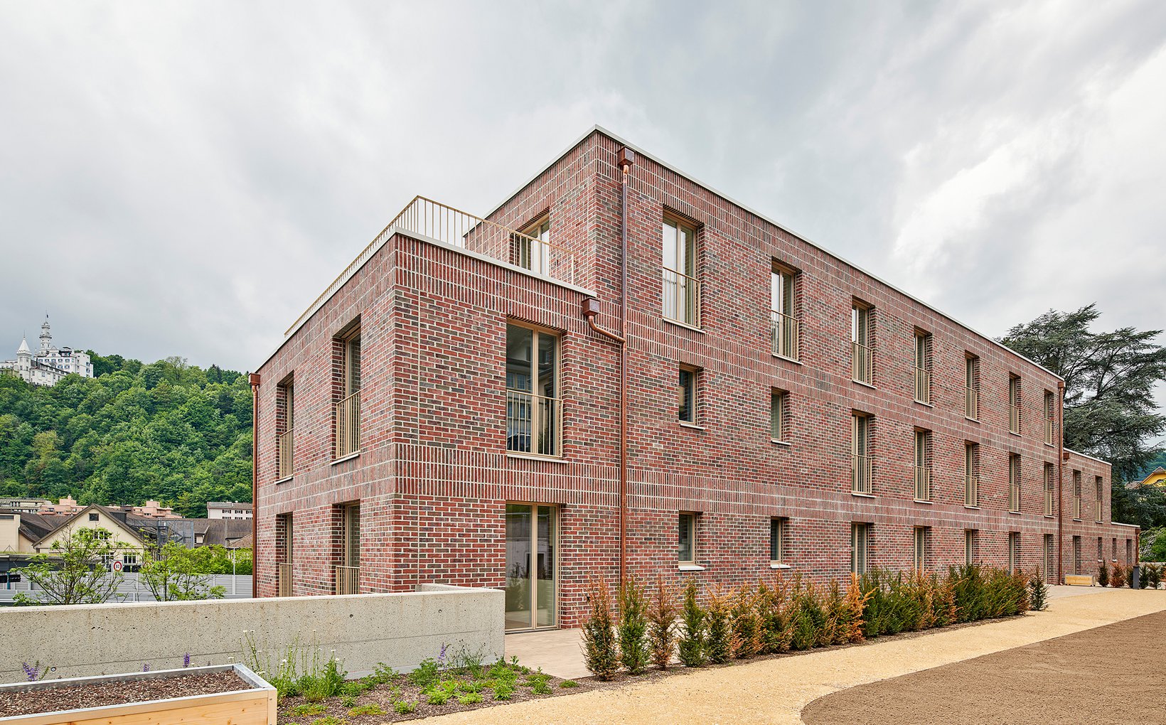Die Materialisierung mit einer traditionellen Klinkerfassade in Rottönen erinnert an die industrielle Vergangenheit.