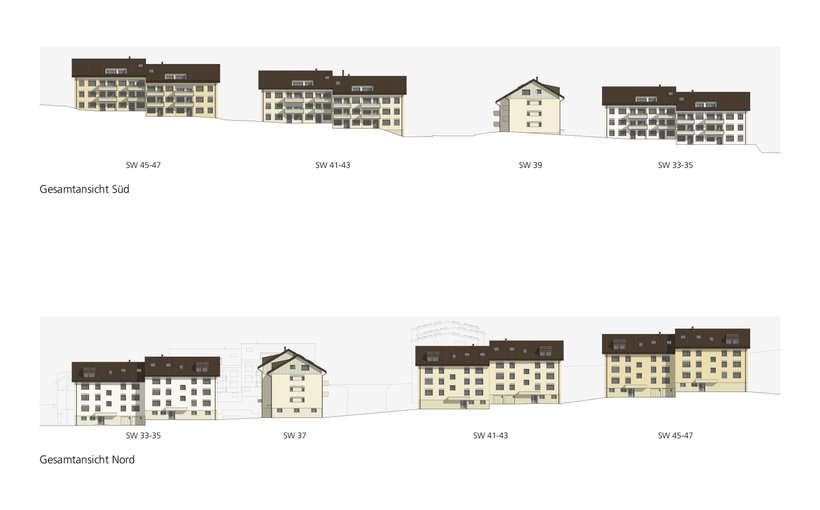 Die Sanierung der 12 Häuser verfolgt das Ziel, den Wohnkomfort der 74 Wohnungen auf den neuesten Stand zu bringen und die energetische Effizienz zu verbessern. Durch den Austausch der Fenster wird der Energieverbrauch gesenkt und das Raumklima optimiert. Gleichzeitig wird die Wärmedämmung verbessert. Ein zentraler Bestandteil der Massnahmen ist der Austausch der alten Ölheizung durch eine moderne Fernwärmeversorgung. In allen Wohnungen werden die Küchen und Bäder erneuert, um eine zeitgemässe Ausstattung zu gewährleisten. Die Renovationsarbeiten werden im bewohnten Zustand durchgeführt. Insgesamt leisten die Sanierungsmassnahmen einen wichtigen Beitrag zu einer nachhaltigen und zukunftsfähigen Wohnumgebung.