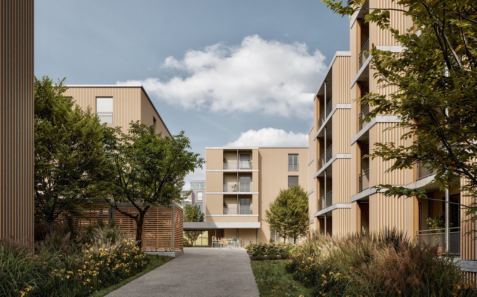 Historische Kontinuität, Leben in Gemeinschaft, Schlichtheit und eine Massstäblichkeit, welche dem Ort angemessen ist, verleihen dem neuen Wohnquartier seine Identität.