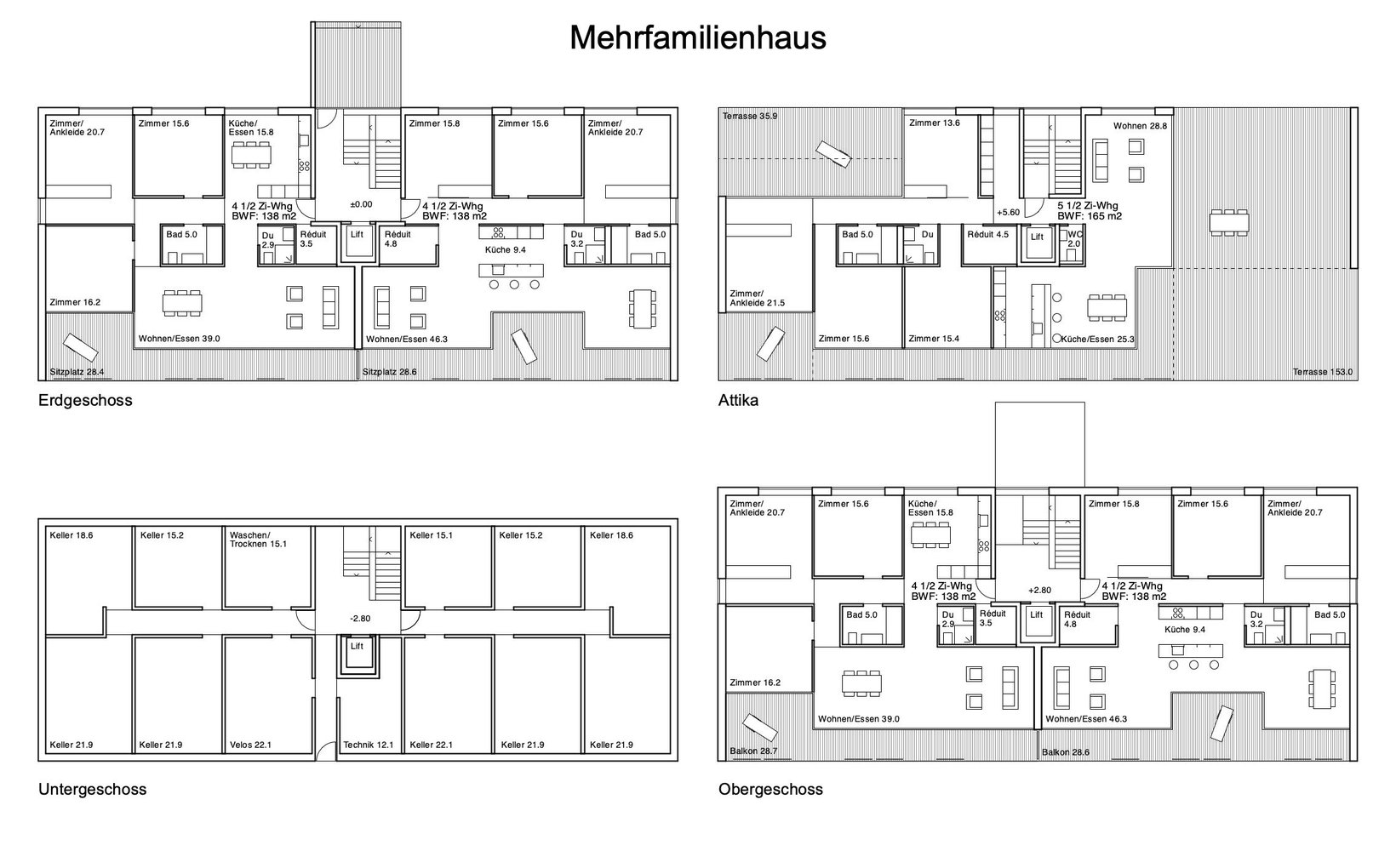 und Mehrfamilienhäuser etablieren ein ruhiges und grossräumiges Häuser-Feld, welches vielfältige Bezüge zur Landschaft artikuliert.